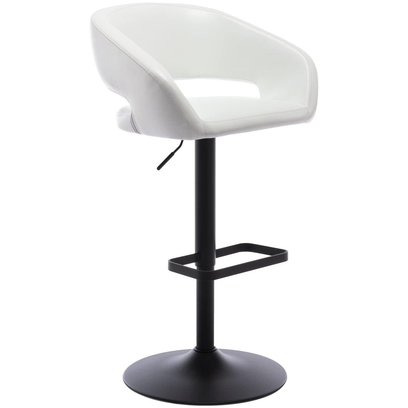 Vogue Furniture Direct Adjustable Bar Stool With Hollow Back And Arms, Modern Pu Leather Swivel Barstool, Airlift Counter Height Bar Chair For Kitchen Dining Room (Pearl White, Black Base)