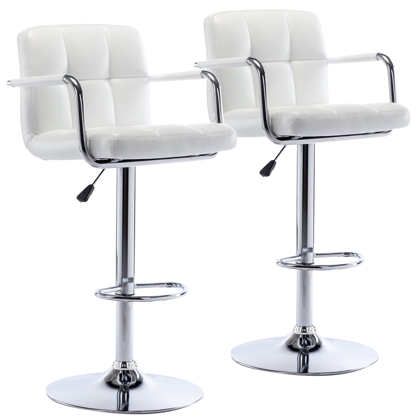 Vogue Furniture Direct Modern Pu Leather Square Bar Stools, Adjustable Swivel Barstools With Back And Arms, Airlift Counter Height Chairs For Kitchen Dining Pub Cafe Set Of 2 (Pearl White)