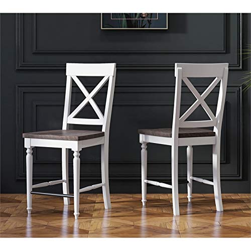 Wallace & Bay Maddox Espresso & Antique White Wood 24" Bar Stool - Set of Two