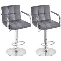Yaheetech Counter Height Bar Stools Set Of 2 Velvet Swivel Barstools For Kitchen Stool Height Adjustable Counter Stool Barstools With Armrest, Velvet, Grey