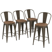 Yongqiang 24 Inch Bar Stools Set Of 4 Kitchen Counter Height Bar Chairs High Back Metal Barstools With Large Wooden Seat Industrial Rusty