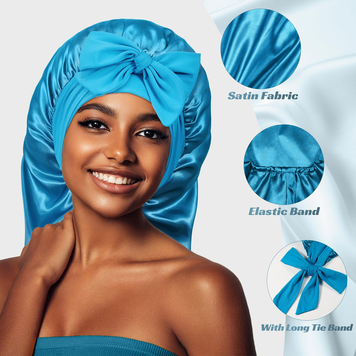 Philights Long Bonnet With Tie Band, Satin Bonnet Silk Bonnet For Sleeping Women, Silk Hair Bonnet For Sleeping, Sleep Bonnets F