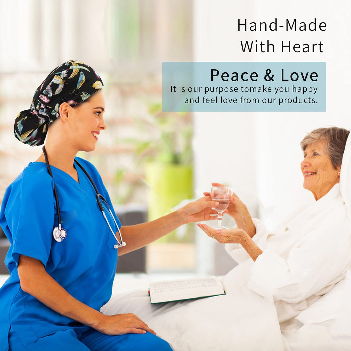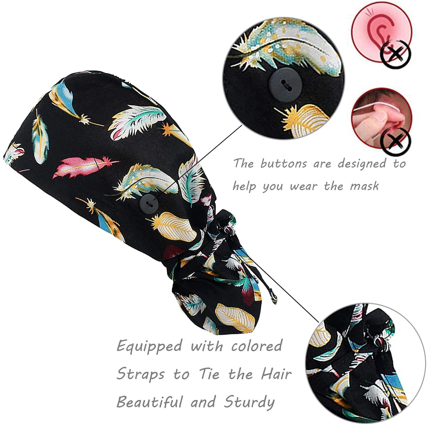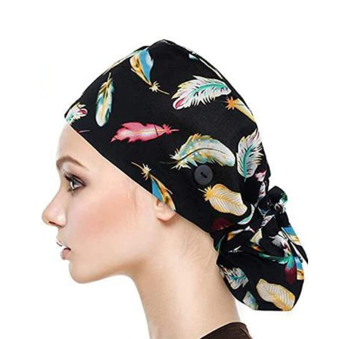 Scrub Hats Ponytail Pouch & Button Design: This Is A Comment From A Customer: (It Is A Very Good Solution For People With Long Hair. Hair Conveniently Goes Into The Hair Pouch And It Gets All My Hair Covered, Which Is Important For Me In The Area That I Work. Buttons For The Mask Keeps My Ears Spared Of Hurting In The End Of The Day. I Like The Designs As Well ) Makes You Look Professional And Brisk,When Working,Scrub Caps It Can Prevent Falling Hair, And The Production Is More Safe And Hygienic Scrub Caps Women [Premium Material & Adjustment] 100% High-Grade Cotton Fabric, Light, Comfortable & Breathable, Fast Dry. Foheel Style Bouffant Hat Have An Elasticized Band And Ties In The Back That Can Be Worn Two Ways: Tied Loosely In Back Or Tied Up In A Ponytail. One Size