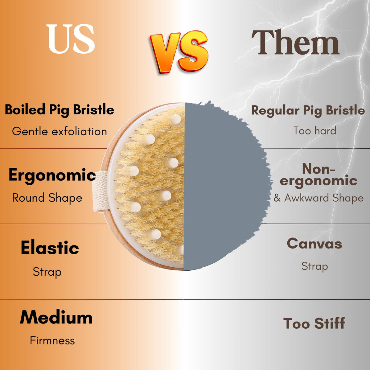 Premium Dry Brushing Body Brush, Best For Exfoliating Dry Skin, Lymphatic Drainage And Cellulite Treatment, Organic Spa Massage