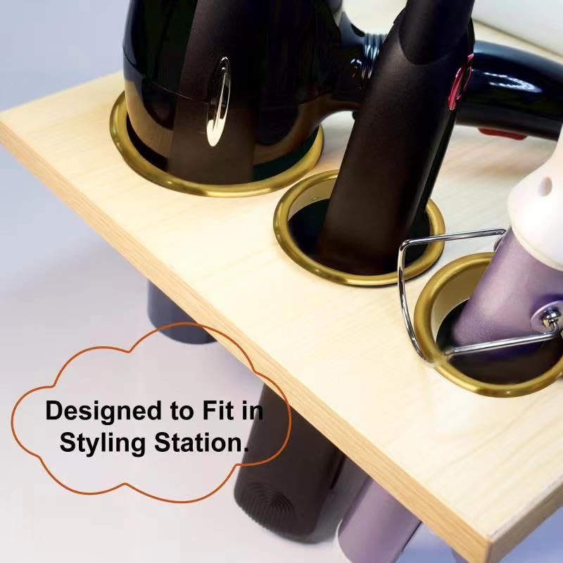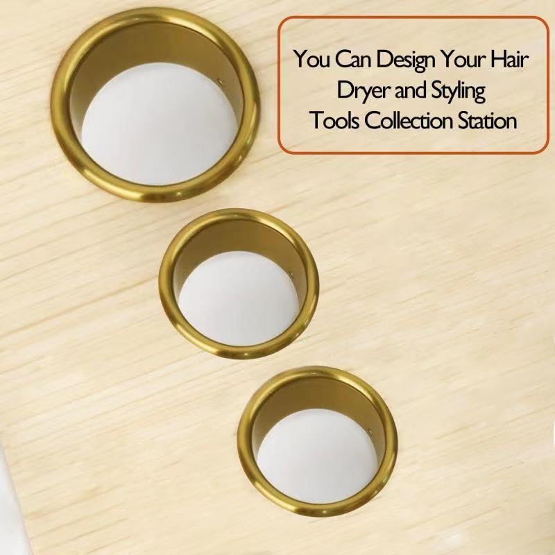 Queesaln Hair Dryer Holder, Salon Hair Styling Station Organizer, 3Pcs (Golden, Stainless Steel, Heat & Burn Resistant, Diameter