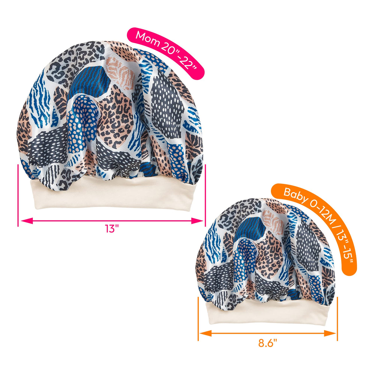 Red By Kiss 2-In-1 Mommy & Me Bonnet Sleeping Caps Hair Bonnet Hair Wrap (Leopard)