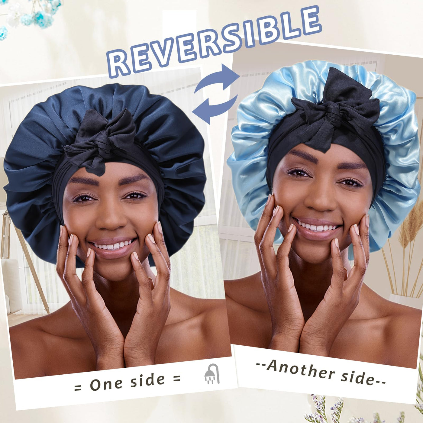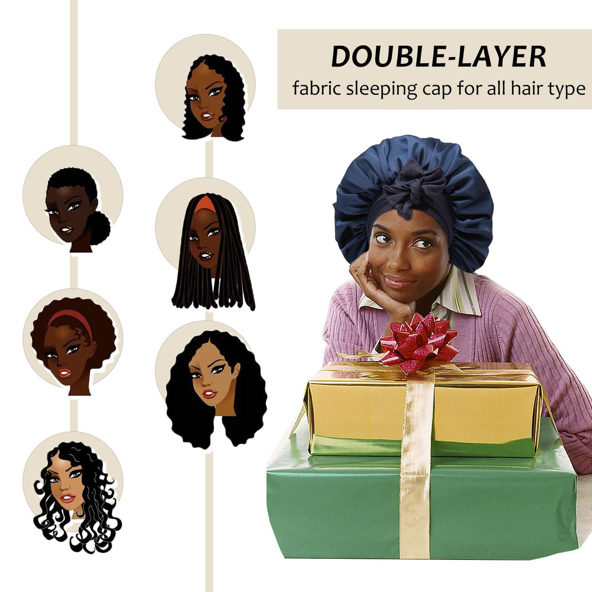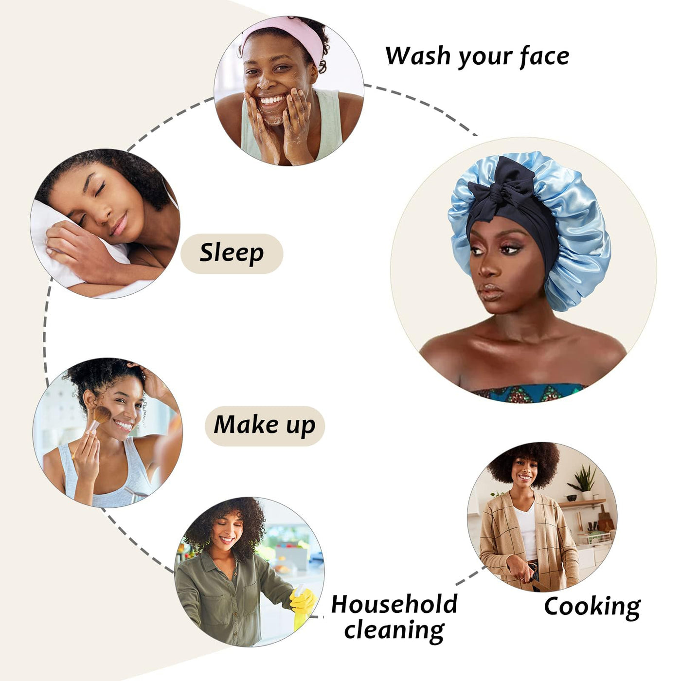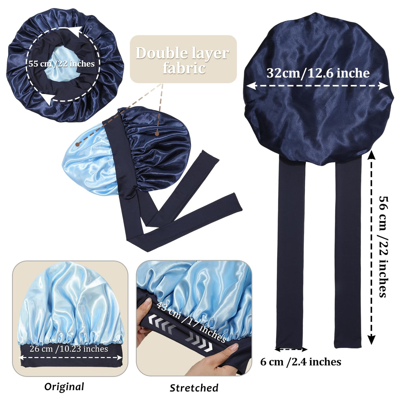Reversible Satin Bonnet For Women With 3Pcs Hair Scrunchies Tie Band Hair Bonnet For Sleeping Large 2 Layered Silk Sleeping Cap