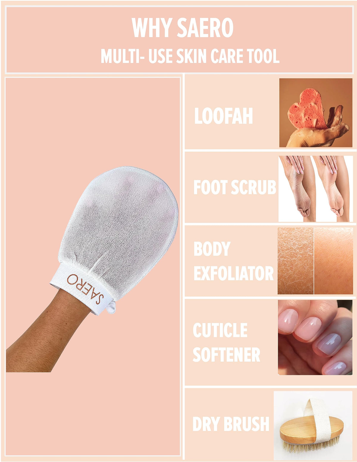 Unlock Timeless Skin Secrets Saero, Which Means New In Korean, Was Developed By Korean Spa Professionals. Bi-Monthly Korean Spa Visits Are A Tradition Growing Up In A Korean Family, And At The Onset Of The Pandemic, We'Ve Been Denied The Luxury Of Regular Korean Scrub Treatment! Other Physical Exfoliants On The Market Either Dont Have A Rough Enough Texture Or Slip Off Too Easily While Scrubbing. We Wanted To Offer A Solution That Combines The Efficacy Of Scrubber Gloves Used In Korean Spa Treatments With The Convenience Of Spending Leisurely Spa Time Right In The Comforts Of Your Home. Prevent Dead Skin Buildup Our Body Exfoliates Naturally, Shedding About 40,000 Skin Cells Every Hour. However, Factors Such As Aging, Skin Dryness, Sun Exposure And Other Environmental Factors Can Cause Dead Skin Buildup Which Prevents This Natural Process. All These Can Result In Flaky Skin, Dry Patches, And Clogged Pores. You Can Help Your Body Naturally Shed These Cells Through Deep Exfoliation. Protect Your Body & Planet.The Saero Deep Exfoliating Mitt Is A Sustainable, Safe, And Natural Exfoliant That Can Easily Be Used While Bathing. When Using This Product, Theres No Need For Other Expensive Or Harmful Skin Exfoliants. The Unique Silk-Like Texture Of These Asian Exfoliating Gloves For Body Provides Deep Exfoliation, Removing Layers Of Dead Skin And Product Buildup. The Easy-To-Use Exfoliator Glove Fits Men And Women, Isnt Easily Deformed And Has Minimal Shrinkage. It Is Gentle Enough For Use On Any Part Of The Body, And Is Reliable In Softening Especially Rough Areas Like The Soles Of The Feet Or The Elbows.
