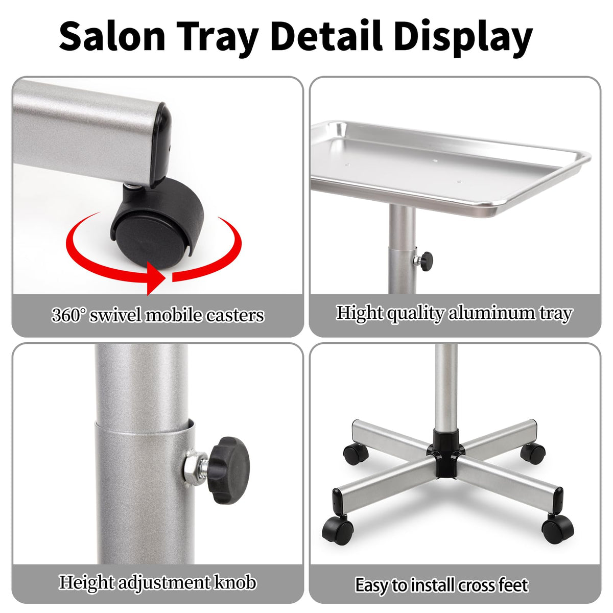 Salon Tray Cart,Aluminum Instrument Salon Tray On Wheels,Height Adjustble Storage Utility Cart,Hair Salon Tray,Tattoo Tray On Wh