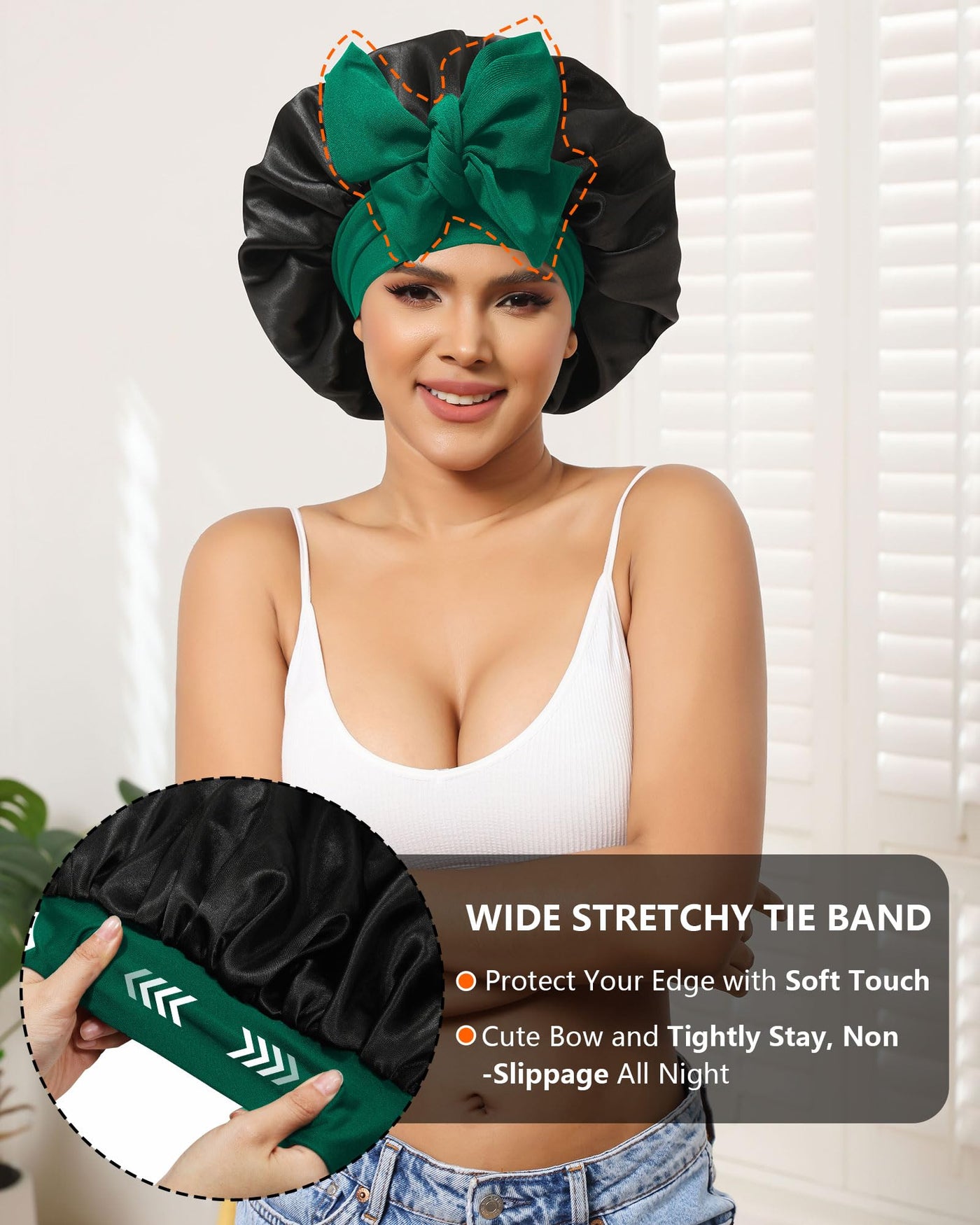 Satin Bonnet For Women Silk Bonnets For Sleeping Curly Hair Bonnet With Elastic Tie Band Reversible Double Layer Sleep Cap Hair