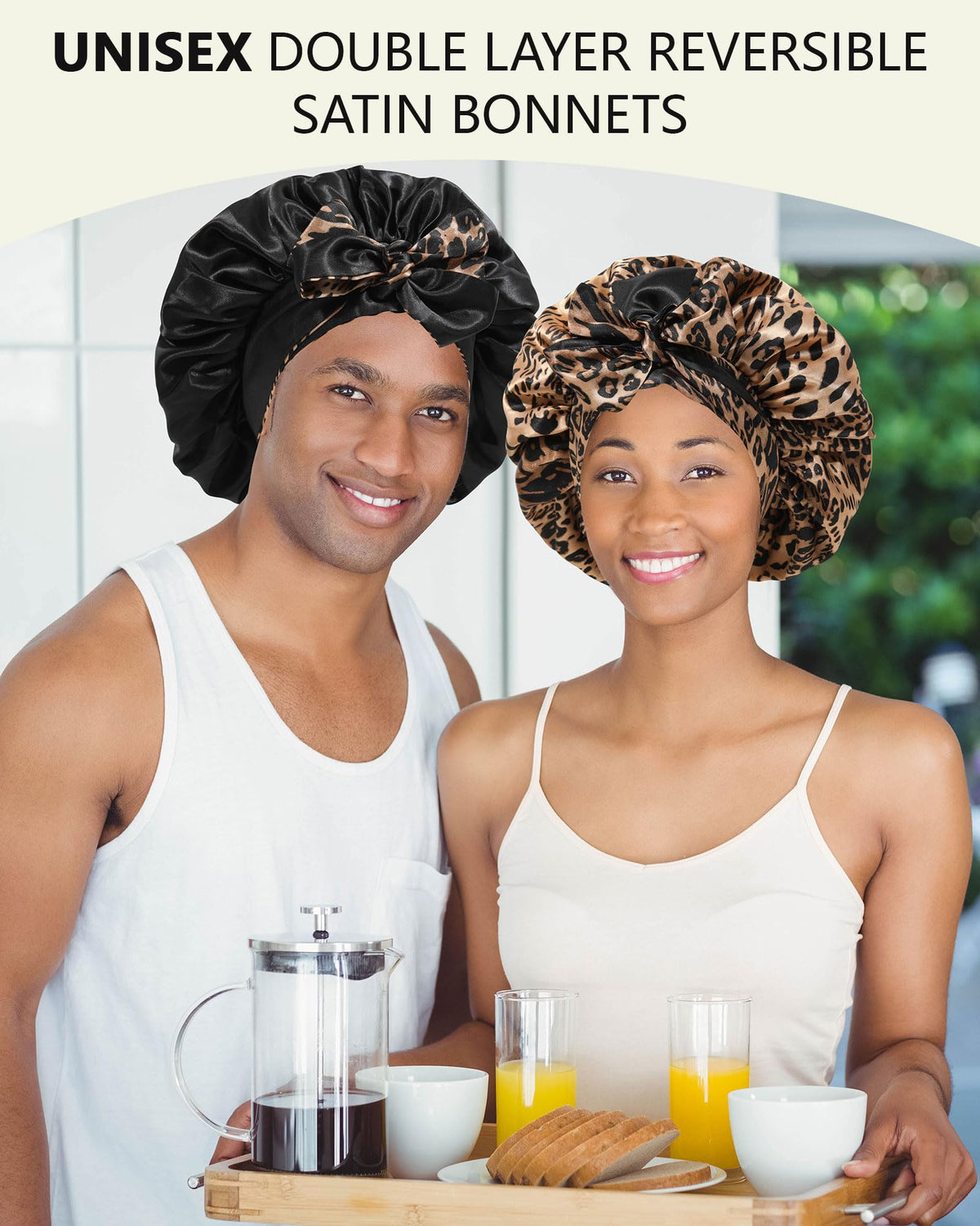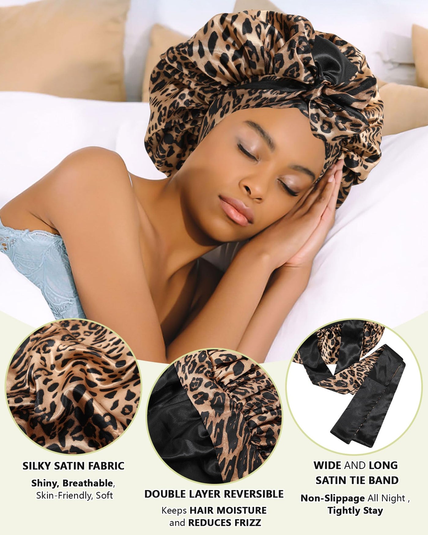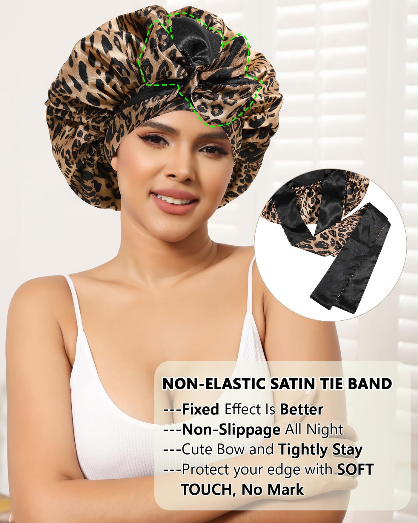 Satin Bonnet Silk Hair Bonnets For Women Curly Hair Wrap For Sleeping Cap Reversible Bonnet With Tie Band Night Cap Double Layer