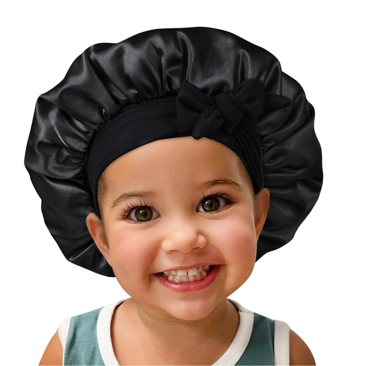 Satin Silk Bonnet Hair Cap: 2Pcs Bonnets For Kids With Elastic Tie Band Adjustable Straps For Sleeping Sleep Comfortable - Stret