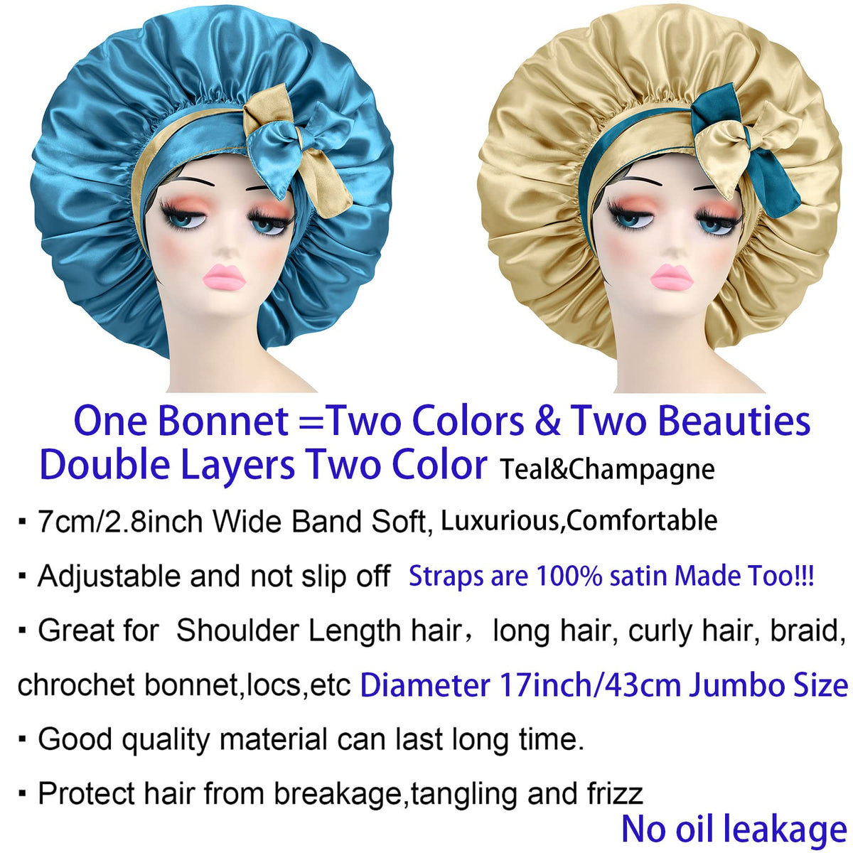 Satin Silk Bonnet Hair Cap: Extra Large Jumbo Adjustable Double Layer Reversible Sleeping Satin Lined Bonnets Night Cap For Wome