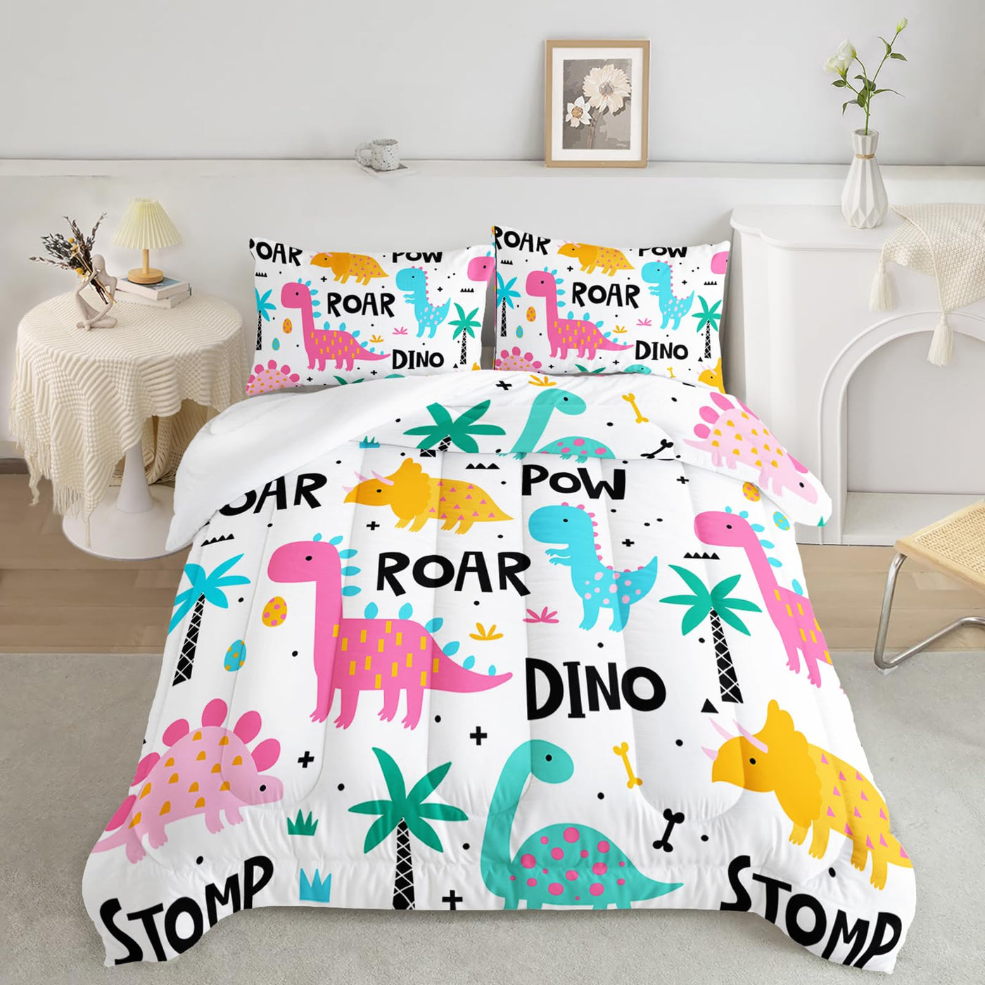 Axolotl Girls Bedding Cartoon Dinosaur Comforter Set Twin Size,Cute Dinosaur Bedding Set For Girls Teens Kids Boys Adults Room D