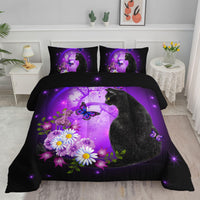 Black Cat Bedding Cartoon Cat Comforter Set Full,Daisy Butterflies Printed Kids Bedding Set For Kids Boys Girls Adults Room Deco