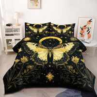 Ccoutuechen Boho Butterfly Comforter Set King Size Sun And Moon Bedding Set Black Quilt Set For Girls Kids - 3Pcs Soft Fluffy Mi