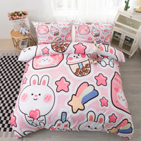 Cvhouse Kawaii Bedding Set Twin Size,Cute Rabbit Bed For Girls Kids Teens,Pink Comforter Cover Soft,Kawaii Duvet Set,Girls Room