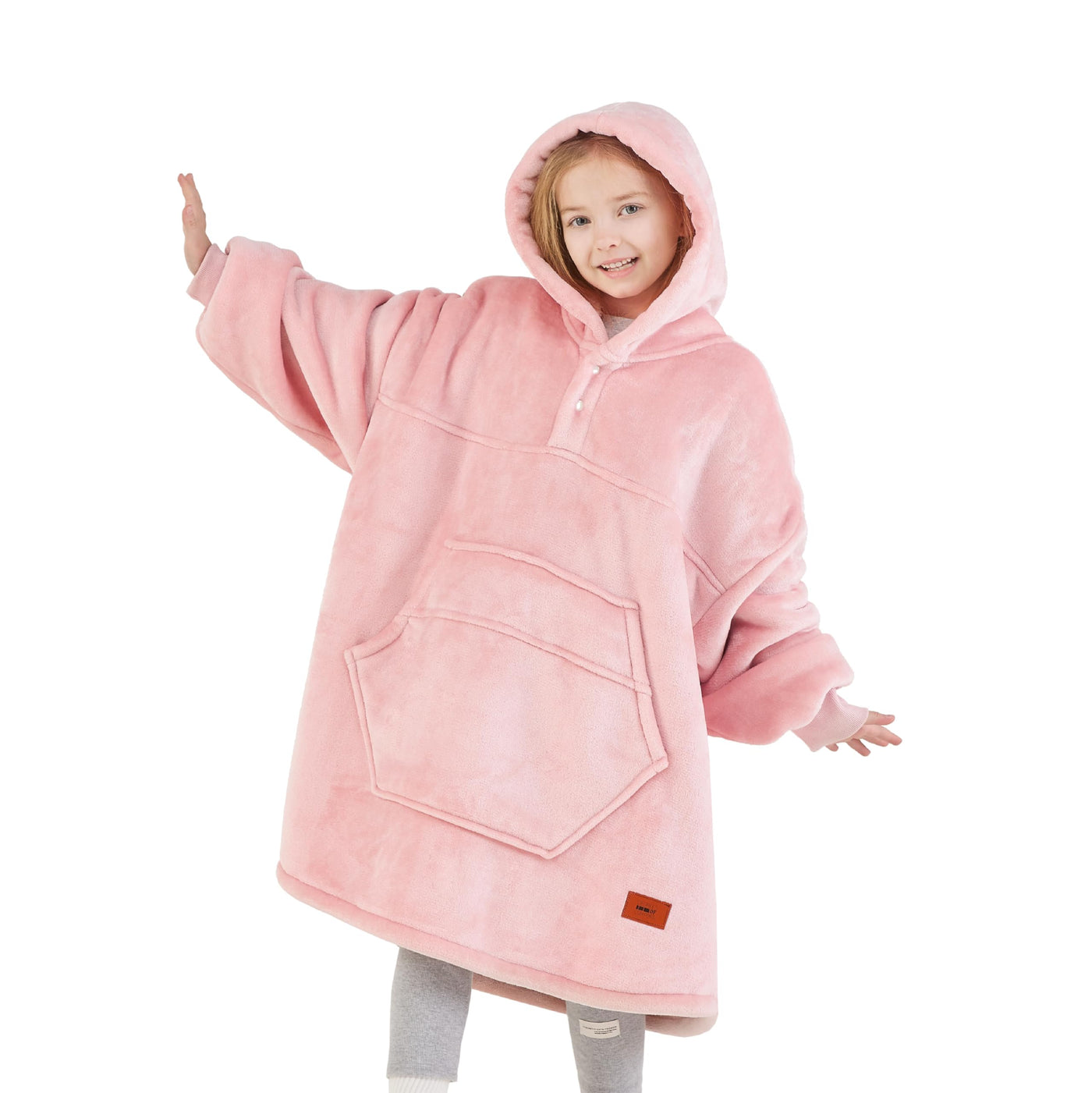 Degrees Of Comfort Wearable Blanket Hoodie For Kids Girls, Sherpa Hooded Blankets Sweatshirt With Pockets, One Size Fits All, Pi