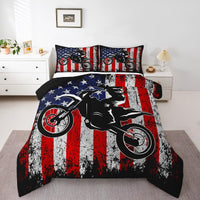 Dirt Bike Comforter Set Twin Motocross Comforter Retro American Flag Bedding Set For Kids Boys Teens Men Grunge Room Decor,Extre