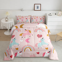 Feelyou Girls Unicorn Comforter Set Full Size Kids Cute Pink Rainbow Horse Decor Comforter For Unicorn Lover Daughter Bedding Se