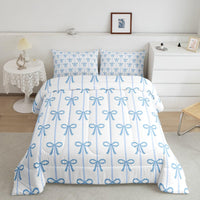 Feelyou Kids Girls Blue Bow Comforter Set,Cute Bowknot Bedding Set Queen Size,Blue Stripe Bow Comforter,Kawaii Bed Set