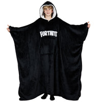 Fortnite Oversized Hoodie Blanket Kids Fleece Extra Long Wearable Blanket Hooded Poncho Boys Girls Teens 14+ (Black Long/14+)