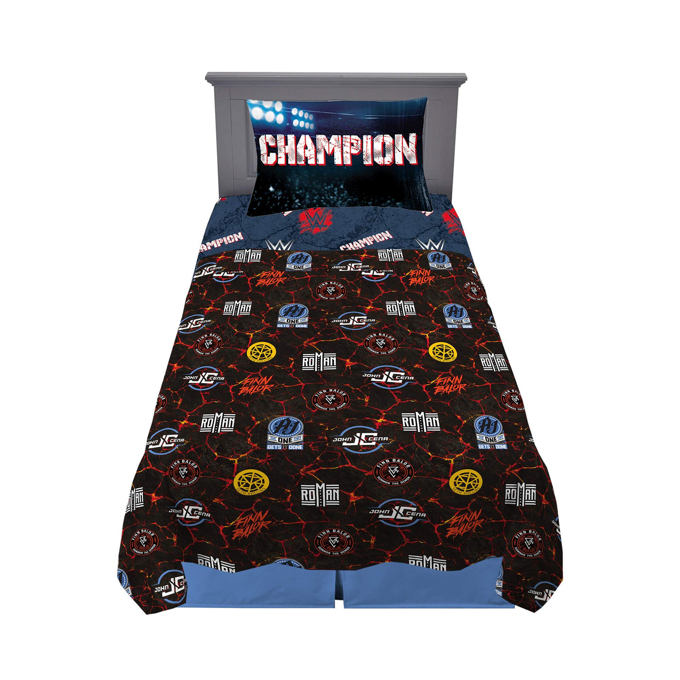 Give Your Childs Bedroom An Exciting Wwe Makeover With This Cool And Colorful Bedding Set. Young Wrestling Fans Will Get A Kick Out Of Cuddling Up With Their Favorite Wwe Superstars As They Dream Of Winning An Armageddon Championship.The Action-Packed Design Features Bold Logos Of Wwe Superstars Finn Balor, Roman Reigns, John Cena, Aj Styles And Seth Rollins With An All-Over Wwe Logo Pattern. Crafted From Plush Microfiber, This Soft And Stylish Sheet Set That Includes A Fitted Sheet, Flat Sheet, And Pillowcase(S) With Colorful Coordinating Logo Imagery For A Cohesive Wwe Look.Wwe Continues To Win New Generations Of Fans With Its Exciting Brand Of Athletic Entertainment. Help Kids Feel Safe And Sound Tucked Into This Fun And Functional Armageddon Bedding Set Featuring Some Of Their Favorite Wrestling Superstars.Set Is Available In A Twin Size 3 Piece Bedding Set Or A Full Size 4 Piece Bedding Set.