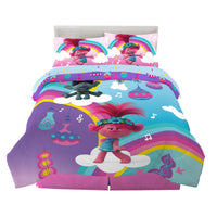 Give Her Bedroom A Rainbow-Worthy Makeover With This Colorful Bedding Set Featuring Poppy, Branch, Prince D, Tiny Diamond, King Trollex, Trollzart And Barb From The Hit Feature Trolls World Tour.This High-Quality Microfiber Set Includes A Comforter, Fitted Sheet, Flat Sheet And Pillowcase. The Reversible Comforter Features Bold Multicolored Poppy, Branch And Tiny Diamond Artwork On One Side And All-Over Character Art Against A Purple Backdrop On The Other. Coordinating Colors And Imagery On The Trolls World Tour Themed Sheets And Pillowcase Help Create A Cohesive Look.In Trolls World Tour, Poppy And The Gang Work Together To Unite The Six Troll Tribes Through Music. Now Fans Can Join In On The Fun At Home With Colorful, High Quality Bedding That Reflects The Cheerful Charm And Inspiring Messages Of The Dreamworks Animated Movie.Set Is Available In A Twin Size 4 Piece Bedding Set Or A Full Size 5 Piece Bedding Set.