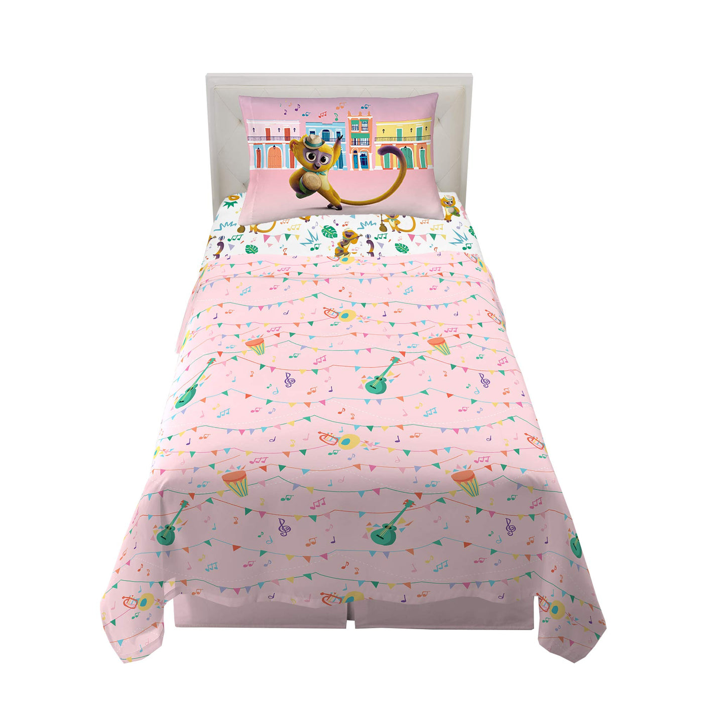 Bring The Sights And Sounds Of Havana And Miami To Your Childs Bedroom With This Vivo Sheet Set. Young Fans Will Love Being Tucked Into The Cool Comfort Of This High-Quality Sheet Set As They Dream Of Epic Adventures With Their Favorite Musical Monkey From The Animated Sony Movie.This Complete Sheet Set Includes A 'Move To The Music' Patterned Fitted Sheet, Flat Sheet, And Pillowcase(S) For A Coordinated Vivo Look. Its Crafted From Soft Microfiber Featuring A Multicolored Vivo Print Against A White Background On The Fitted Sheet, An All-Over Musical Print Against A Pink Background On The Flat Sheet And Bold Vivo Character Artwork On The Pink And Blue Pillowcase(S).Sonys Animated Feature Vivo Is An Exciting Tale Of Music And Friendship Set In Cuba And Florida. Now Kids Can Bring The Musical Fun And Adventure To Bedtime As They Drift Off In Comfort With This Cute And Colorful Sheet Set.Set Is Available In A Twin Size 3 Piece Bedding Set Or A Full Size 4 Piece Bedding Set.