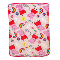 Wrap Your Little One In Joy With This Peppa Pig Silk Touch Throw! Featuring Vibrant Rainbows, Sunny Skies, And Peppa'S Cheerful Face, This Cozy Blanket Is Perfect For Snuggling Up. The Ultra-Soft, Plush Fabric Ensures Warmth And Comfort, Making It A Delightful Addition To Any Child'S Room. Whether It'S For Bedtime, Movie Nights, Or Just Lounging Around, This Peppa Pig Throw Will Become A Favorite Companion. Plus, It'S Machine Washable, Making It Easy To Keep Clean And Fresh. As An Officially Licensed Product, You Can Trust In Its Quality And Authenticity. The Luxurious Silk Touch Material Adds An Extra Layer Of Comfort, Providing A Silky Smooth Feel That Kids Will Love. Let Peppa Pig Bring Endless Smiles And Happiness To Your Child'S Day With Her Cheerful Presence And Bright Colors. This Throw Not Only Adds A Fun, Playful Touch To Their Space But Also Provides The Comfort And Coziness They Deserve. Make Every Moment A Little More Special With The Charm Of Peppa Pig And Her Delightful World!