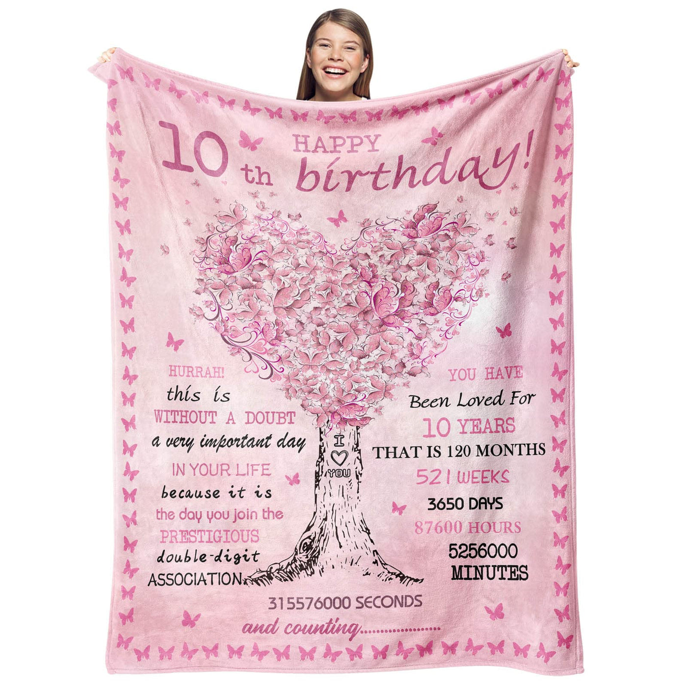 Gevuto 10 Year Old Girl Birthday Gifts Blankets,10Th Birthday Decorations For Girl Throw 50'X60', Best Gifts For 10 Year Old G
