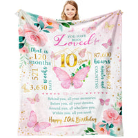 Surprise Your Loved Ones On Their 10Th Birthday! A Delicate And Beautiful 10Th Birthday Blanket Is Enough To Touch Her On This Special Day. We Use A Unique Design Of Butterflies And Flowers, And The Pink Tone Adds More Romance To This Wonderful Birthday. The Heart-Warming Text On The Blanket Allows You To Better Express Your Love For The Birthday Girl. The Precious Love Can Be Used To Pass On To Your Daughter, Sister, Niece, Goddaughter, Etc. Make Them Unforgettable On That Warm Birthday, And Remember Your Warm Birthday Blanket. This Is A Meaningful Birthday Gift, And They Deserve It. Zwerivp Is A Brand Born In Love. We Are Committed To Developing Birthday Products. Our Philosophy Is To Convey Love And Warmth So That Every Birthday Person Can Receive Our Birthday Products Unforgettably. We Hope Everyone On That Special Day Can Be Happy And Get A Surprise. If You Have Any Questions About The Product, Please Contact Us, And We Will Reply To You Within 24 Hours!