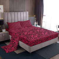 Girls Pink Black Fitted Sheet Zebra Stripes Bed Sheet Set Safari Animal Print Bedding Set For Boys Girls Kids Room Decor Zoo Ani