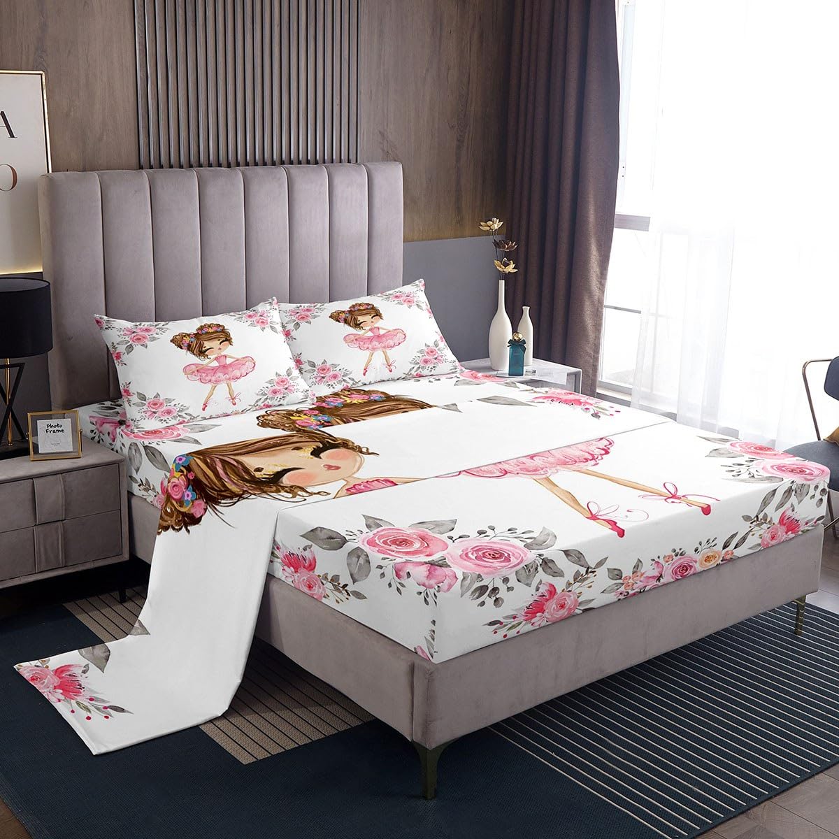 Girly Ballet Bed Sheets Set Twin Size For Girls Kids Ballet Theme Decoration Sheet Set Cute Little Dancers Sheets Ballerina Desi
