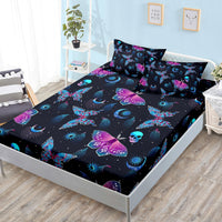 Hosima Halloween Fitted Sheet Skull Butterfly Bed Set,Goth Bedding Set Black Sheets Deep Pocket All-Round Elastic Bed In A Bag F