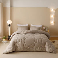 Houseri Beige Coffee Floral Comforter Set Queen Beige Khaki Sunflower Comfy Quilted Comforters Queen Size Coffee Taupe Brown Flu