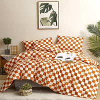 Houseri Burnt Orange Grid Comforter Set King White And Caramel Plaid Bedding Comforter Sets For Women Men Rust Orange Buffalo Ch