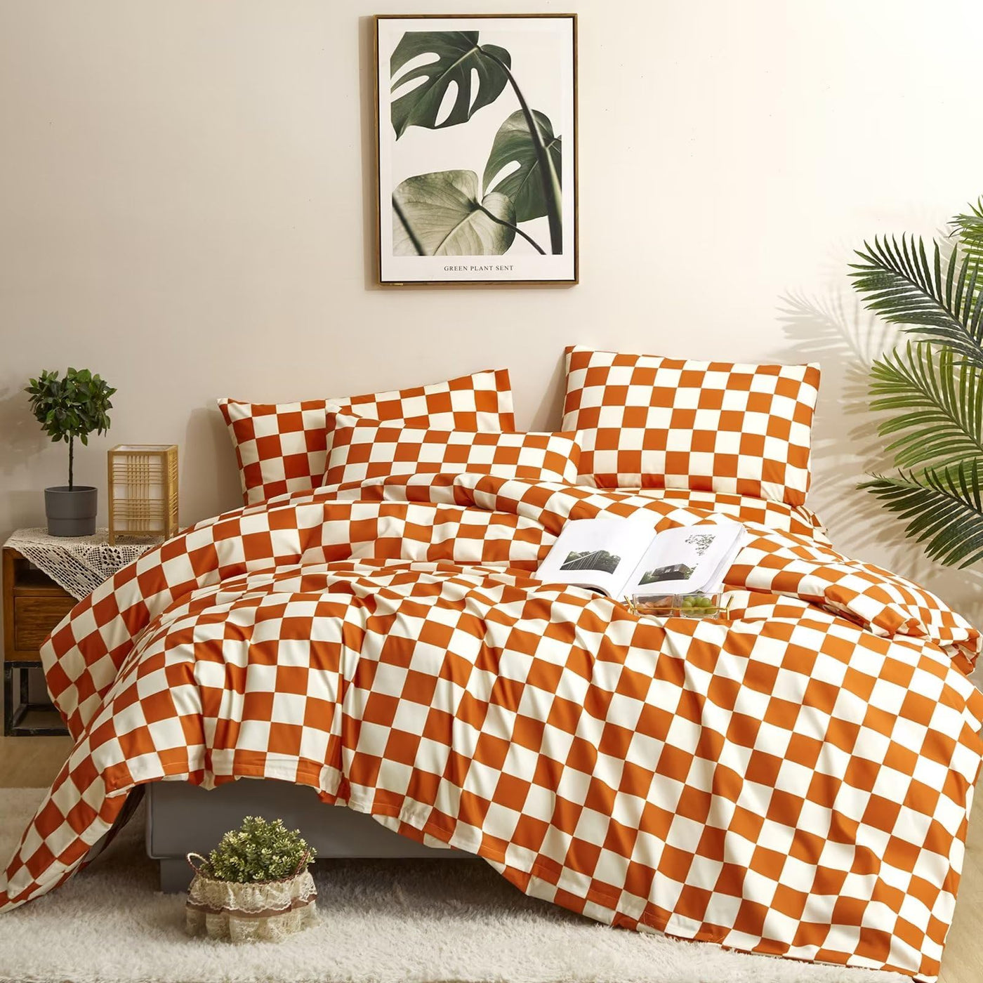 Houseri Burnt Orange Plaid Comforter Set California King Size
