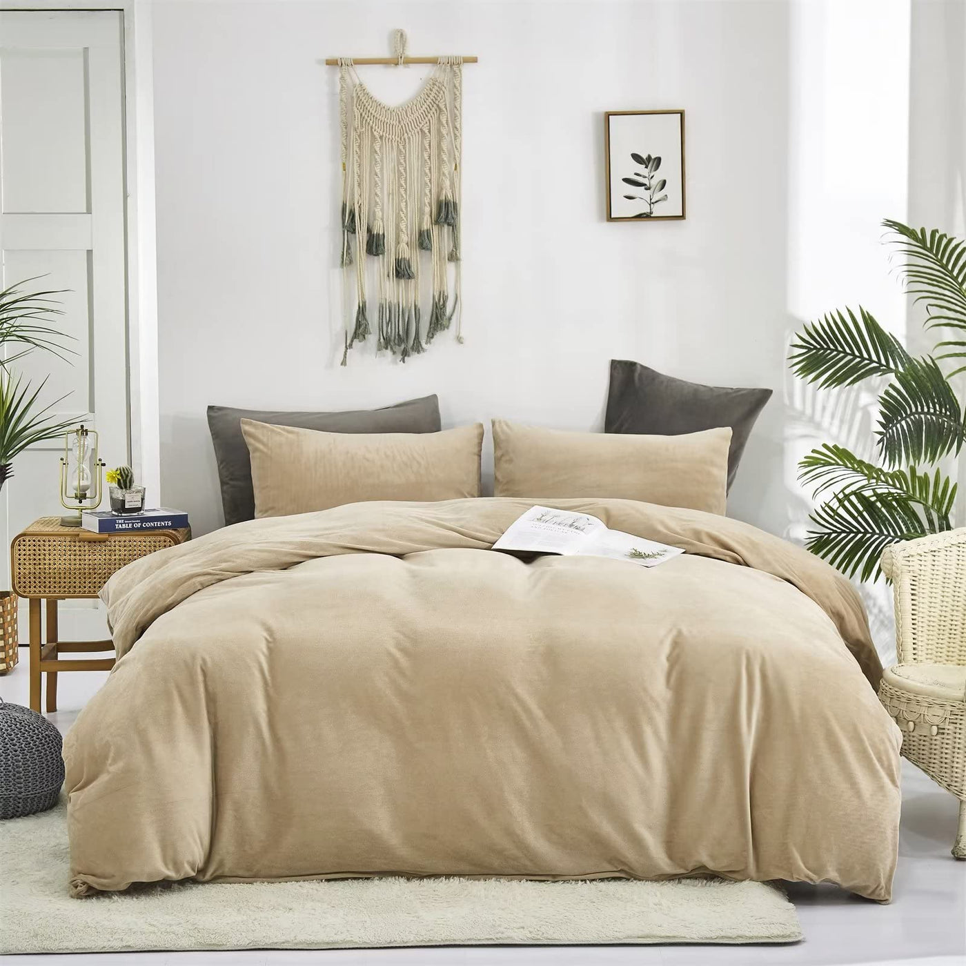 Houseri Taupe Twin Comforter Set Velvet Light Khaki Fluffy Bedding Comforter Twin Size Light Brown Fuzzy Comforter Sets For Kids