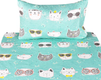 J-Pinno Cats Kitty Cute Twin 100% Cotton 3 Pieces Sheet Set For Kids Girls Children Flat Sheet + Fitted Sheet + Pillowcase Beddi