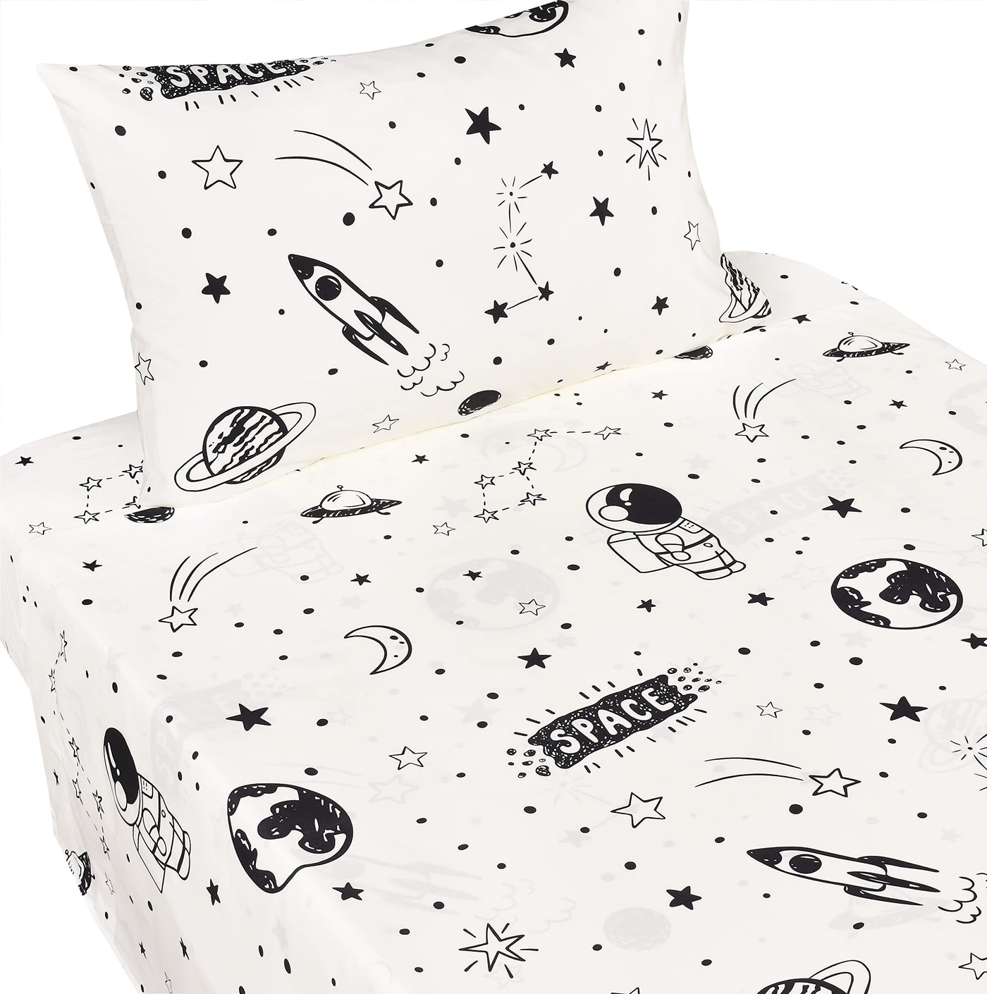 J Pinno Space Astronaut Airship Planet Stars Earth Boys Twin Sheet Set Bedroom Decoration Gift, 100% Cotton, Flat Sheet + Fitted