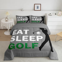 Jejeloiu King Size Golf Bedding Set Boys Girls Golf Sports Comforter Set For Kids Women Men Soft Golf Lover Comforter Gray Quilt
