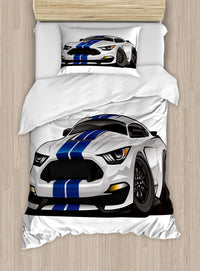 Lunarable Cartoon Duvet Cover Set, Modern American Muscle Race Rally Car In Drive Formula Print, Decorative 3 Piece Bedding Set