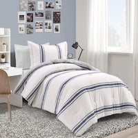 Lush Decor Farmhouse Stripe Reversible Cotton Comforter Set , 2 Piece Set, Twin Xl, Navy - Twin Bedding Set - Dorm Decor - Strip