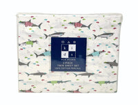 Max Studio Kids 3 Piece Kids Twin Sheet Set Cute Great White Sharks With Striped Shirts