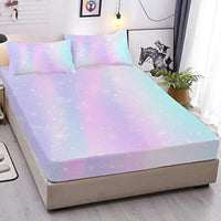 Musolei Colorful Girls Fitted Sheet Set Rainbow Sheets, 3D Rainbow Twin Bedding Set Girl Bed Sheets 2Pcs Boho 1 Fitted Sheet Wit