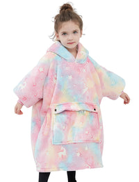Noukow Wearable Blanket Hoodie For Toddlers Oversized Sherpa Blanket Sweatshirt Flannel Sweater Blanket 2-6 Years Old Girl Birth