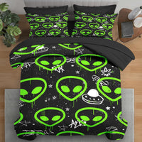 Pamnest Comforter Set Full Size, Neon Green Cute 7 Pcs Bedding For Kids And Adults, Space Line Cartoon Bed Sheet Sets With Fitte