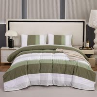 Perfemet Full Size Comforter Sets - Olive Green Bedding Sets Full, Patchwork Striped Bedding Comforter Sets For Boys, 3 Pieces,