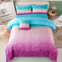 6 Piece Grandient Glitter Kids Comforter Set For Girls 3D Purple Blue Pink Ombre Bed In A Bag For Kids Teens Girls Women Sparkly Galaxy Bed Set With Comforter And Sheets For All Seasonspecification:Material:100% Microfiber Polyestersize:Twin/Full/Queenpackage Includes:1X Comforter1X Fitted Sheet(Solid)1X Flat Sheet(Solid)2X Pillowcases1X Square Pillow Coverfeatures:1. This Gradient Colorful Rainbow Pattern Bed Cover Making Your Bedroom More Warm And Romantic2. This Girls Comforter Sheets Set Use The Latest 3D Printing Technology To Create Truly Exquisite Designs.3. The Comforter Is Lightweight And Breathable, Keeping You Comfortably Naturally.4. Modern Simple Chic Color Ombre Mix With Glitter Stars, Stylish And Sttractive.Notice:1. Please Allow 1-3Cm Error Due To Manual Measurement, Please Make Sure You Do Not Mind Before You Bid.2. Actual Color May Vary From The Color On Your Screen Due To Monitor Color Restrictions.